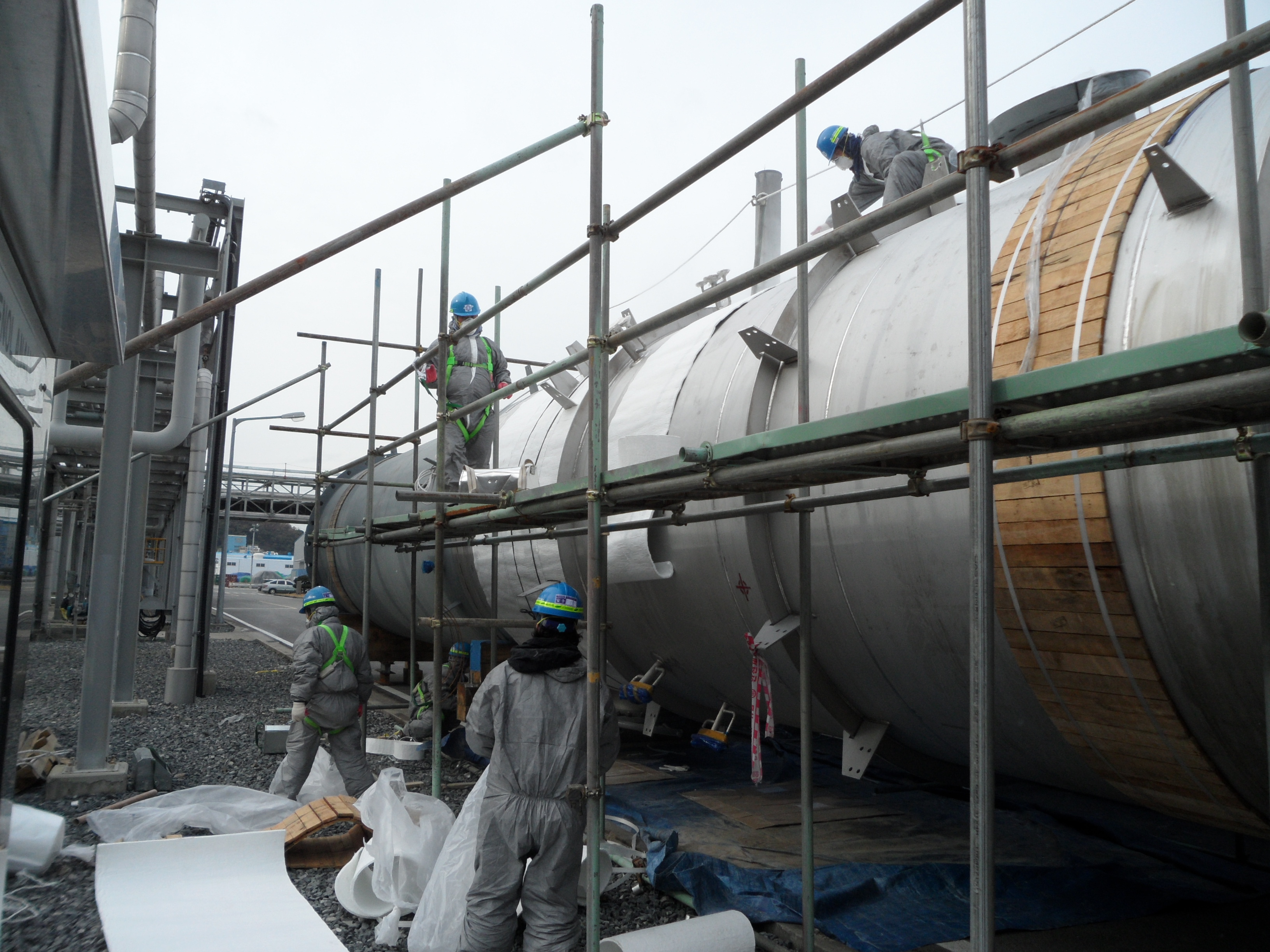 - The reaction tower surface cannot have any drilling installation position, the insulation material is difficult to fix, high requirements for construction technology.